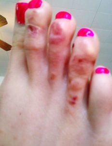 - Tinea pedis or athlete’s foot is an infection that occurs on the feet, particularly between the toes (pedis is the Latin word for foot).